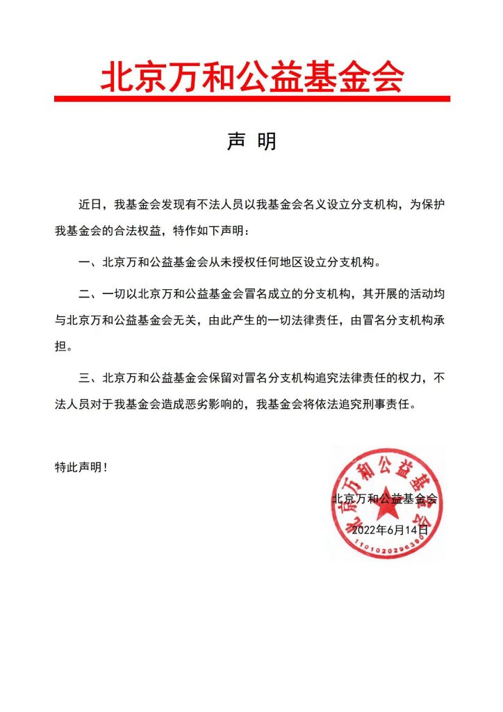 北京万和公益基金会山西工作站未经授权,属非法成立,与北京万和公益基金会无关!