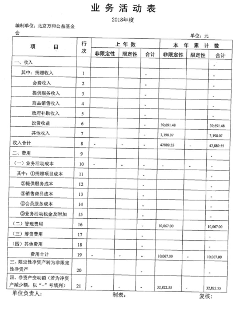 4、北京万和公益基金会成立以来,基金会财务还未参加北京市民政局的年度报告工作,故未获得年度报告工作结论。